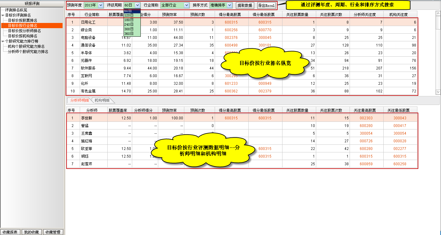 目标价按行业排名主要是通过统计分析师和机构对行业所属个股的关注次数、预测次数、预测准确率、股票覆盖率等指标来评估行业的预测准确率情况,进而发现分析师或机构预测准确的行业,同时提供对应行业所属个股的分析师和机构预测明细。